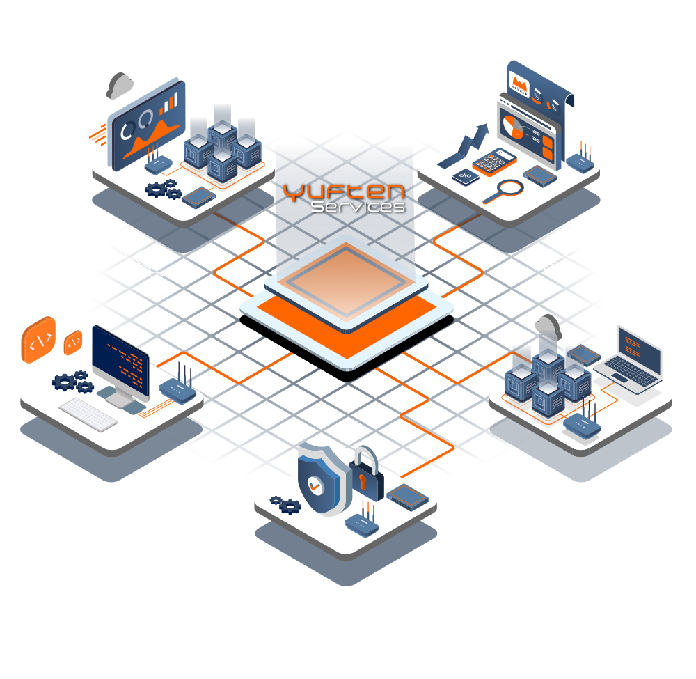 Chez Yuften Services, nous sommes spécialisés dans la conception et l'intégration de solutions réseau avancées, incluant LAN, WiFi, et WAN, jusqu'aux centres de données sophistiqués. Notre équipe d'experts certifiés emploie des technologies de pointe pour créer des infrastructures évolutives et sécurisées. Nous mettons l'accent sur les détails pour développer des stratégies qui surpassent les attentes industrielles, en utilisant des pratiques de sécurité internationales pour garantir des systèmes robustes et fiables.